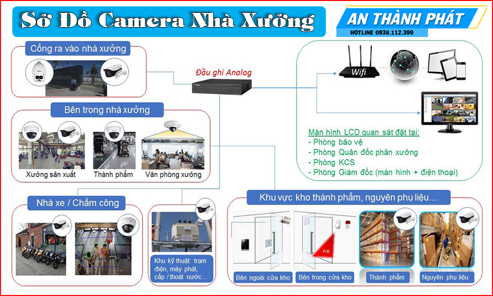 Xác định vị trí lắp đặt: Xác định các vị trí quan trọng trong nhà xưởng mà bạn muốn giám sát, chẳng hạn như cửa ra vào, khu vực lưu trữ, hoặc nơi có giá trị cao.